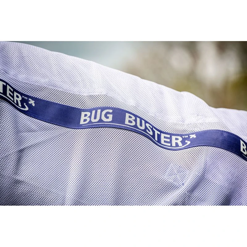 The Bug Buster is a cool way to protect your horse. Made with 100% breathable polyester mesh offering UV protection to keep the coat from fading. Other design features include a straight front t-lock closure, three straight belly surcingles, dual leg arches, and a large tail flap with a tail string. This fly sheet is liner compatible and comes with a detachable hood. A summertime must-have!