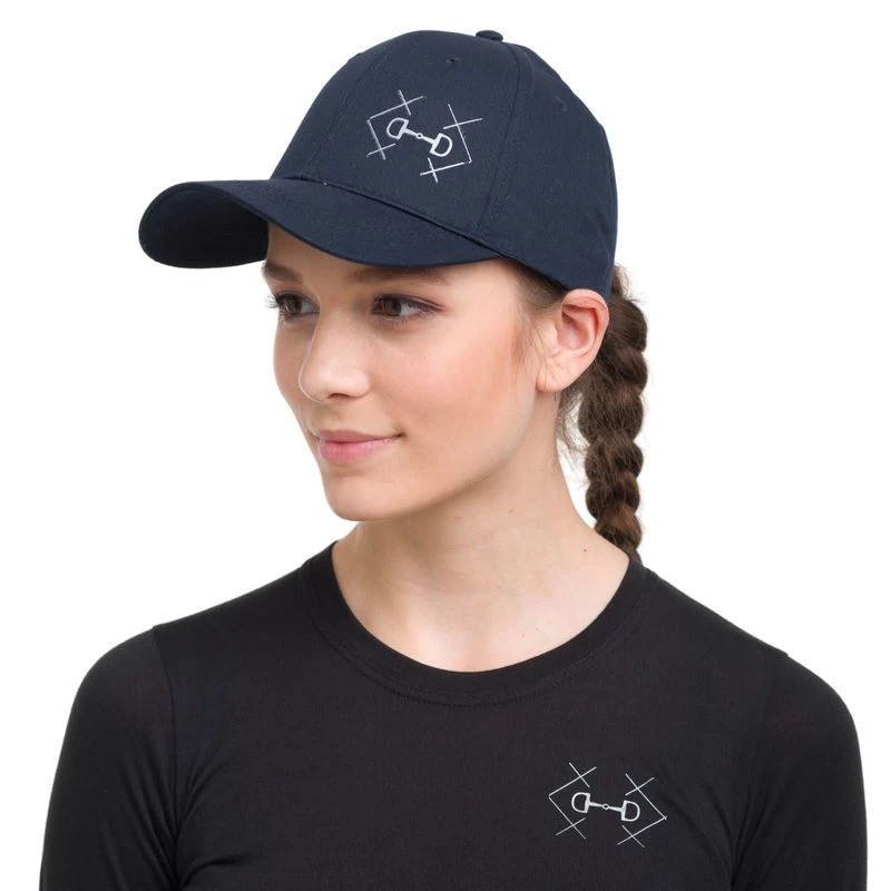 A sport chic cap with a rounded crown and stiff beak. Decorated with elegant silver bit surrounded by a tartan motif