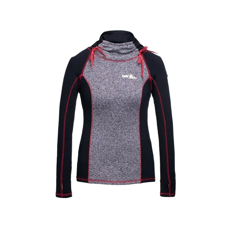 This is a very warm and tailored turtleneck made of a high quality thermoactive and breathable fabric. It is decorated with contrast stitching and ties. UV protection and moisture wicking.