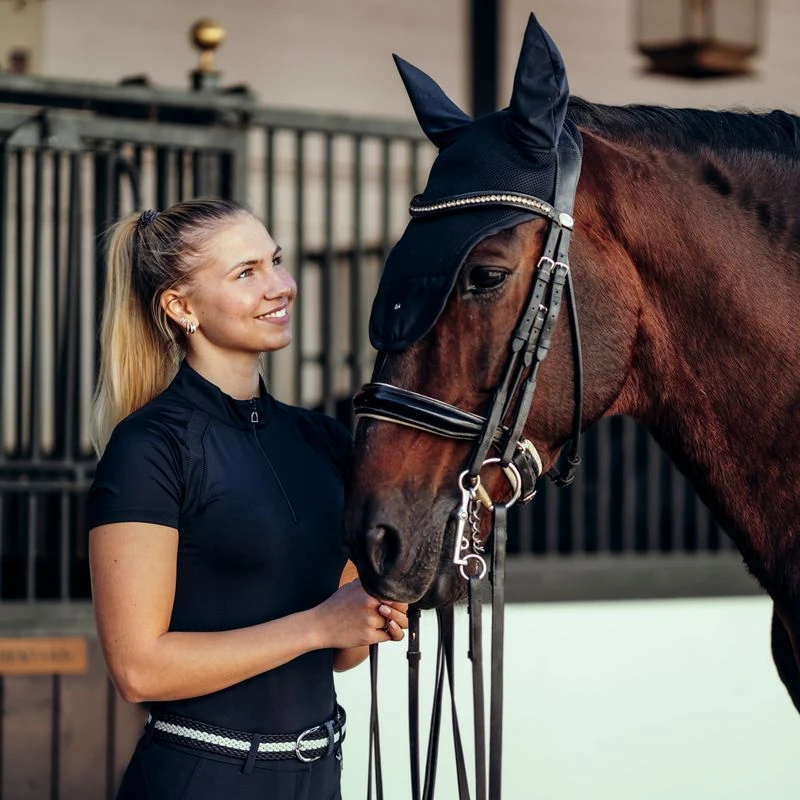 The Horze Phoenix ear net is your new bright addition to your riding equipment. Elastic ears and breathable crochet keep your horse comfortable. The deep front with colorful trim looks elegant.