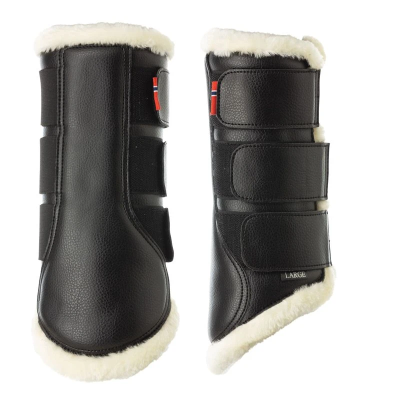 Our B Vertigo Wellington boots are made from durable synthetic leather material and lined with soft faux fur. Hook-and-loop and elasticated fasteners give a secure fit to the horse’s leg. The classic look incorporates easily into your tack. Pair these boots with the rest of our B Vertigo Wellington range for a full outfit!