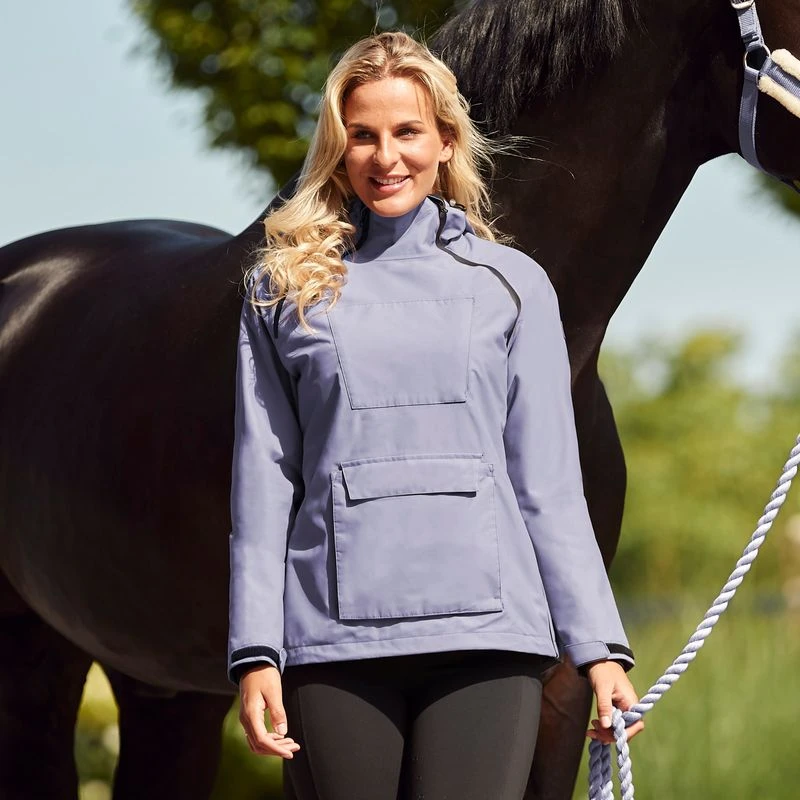 Our Horze Ayla rain jacket is made from waterproof material that keeps you dry in the saddle and on the paddock. Breathable lining is comfortable and prevents you from overheating. One long zipper runs down the side to open it like a regular jacket, while the short zipper can be used to pull the jacket over your head like an anorak. The hood can be easily detached. A large front pockets keeps your belongings safe. Adjust the hem for your perfect fit.