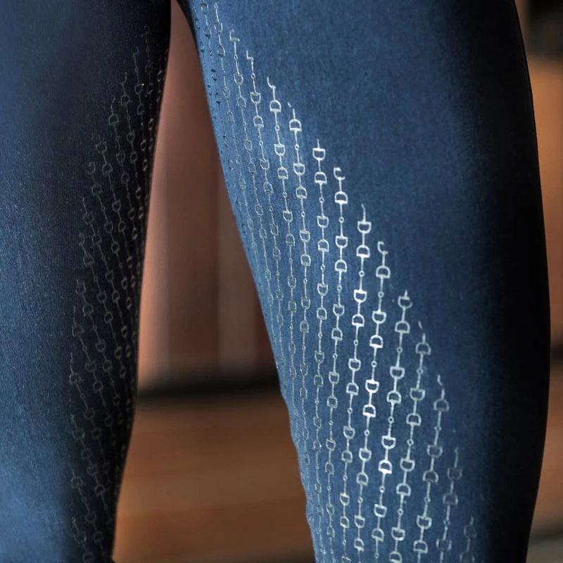 Show off traditional and modern updates in these comfortable breeches offering classic colors for training and white for show. The high waist on these traditional breeches is comfortable and supportive with a slightly higher at the back. These breeches have a unique repeating bit print on the tone-to-tone full seat.