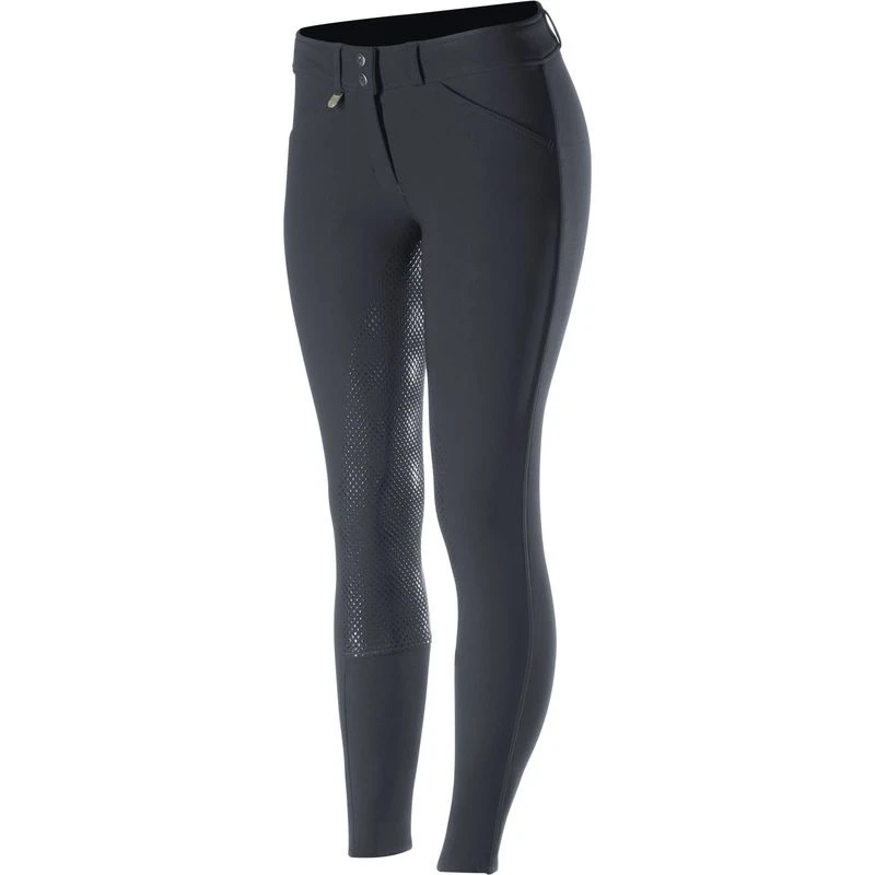The Horze Grand Prix Full Seat Breeches with Silicone Grip are great breeches whether you’re riding in a clinic, a lesson, or in the show jumper arena. This new and improved classic breech will add a professional touch to your look. The cut is elegant, formal, and timeless with a silicone full seat that provides excellent grip in the saddle, a comfortable, contoured medium waistband that adds to the whole package, and a front zip with 2 front pockets. The Women’s Grand Prix Silicone Grip Full Seat Breeches are made from a functional, breathable fabric that has a water and dirt repellent surface with UV and UPF 50+ protection. Dust and grime won’t stick!