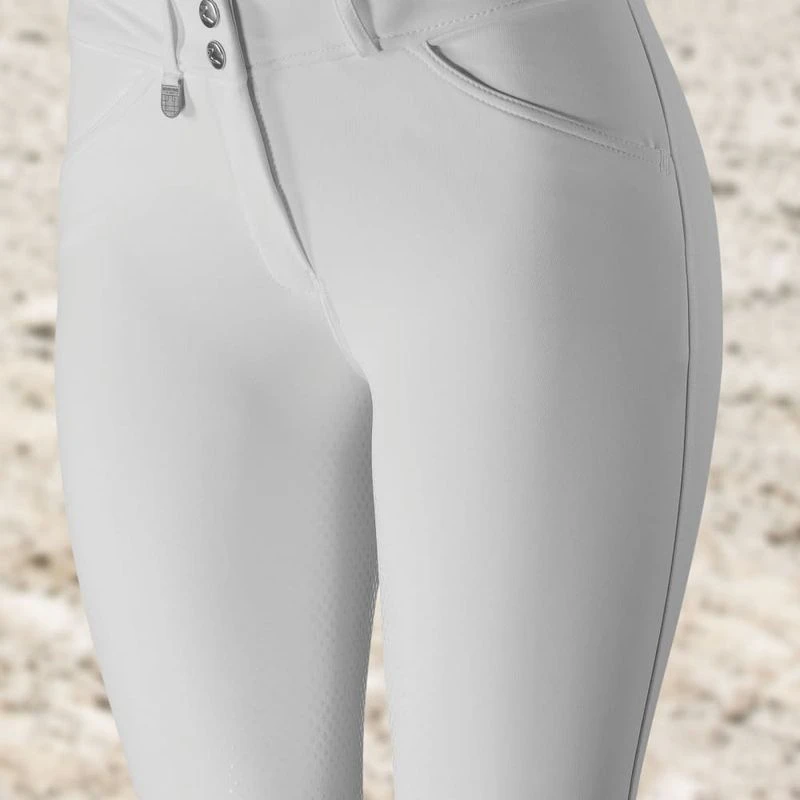 The Horze Grand Prix Full Seat Breeches with Silicone Grip are great breeches whether you’re riding in a clinic, a lesson, or in the show jumper arena. This new and improved classic breech will add a professional touch to your look. The cut is elegant, formal, and timeless with a silicone full seat that provides excellent grip in the saddle, a comfortable, contoured medium waistband that adds to the whole package, and a front zip with 2 front pockets. The Women’s Grand Prix Silicone Grip Full Seat Breeches are made from a functional, breathable fabric that has a water and dirt repellent surface with UV and UPF 50+ protection. Dust and grime won’t stick!