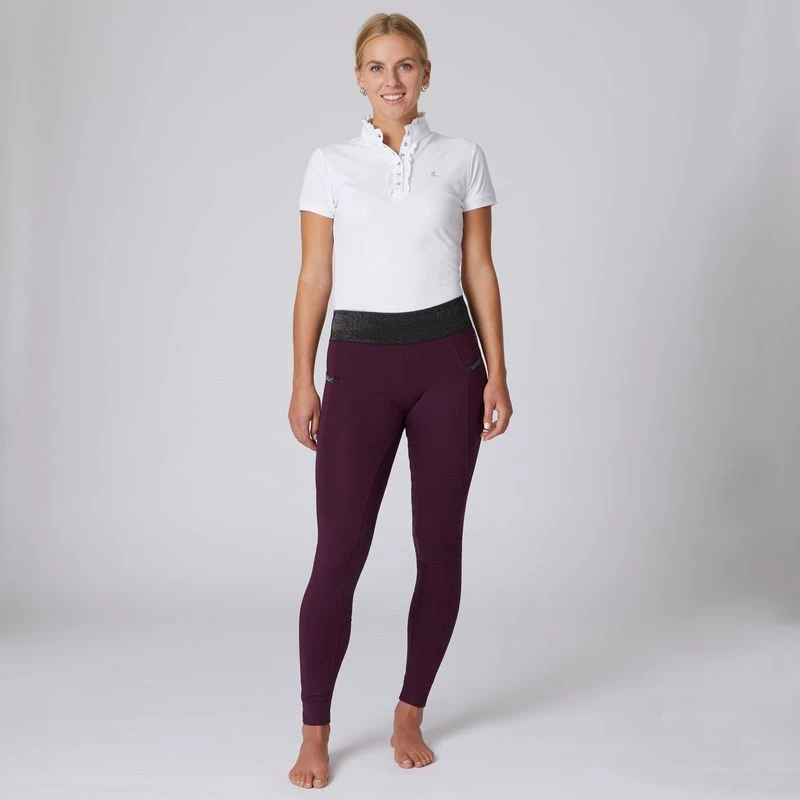 These full seat riding tights are equipped with everything you need to stay comfortable while riding in winter: An elastic waist on warm material with a silicone full seat. Front pockets and a zip mobile pocket in the back keep your belongings safe. A monogram print brings a touch of luxury to these affordable leggings.