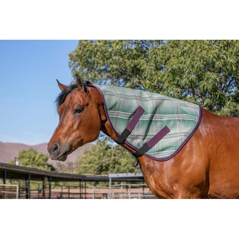 This neck piece attaches to the protective sheet with three elastic straps. It provides coverage to the sensitive neck from pests, reducing the chances of welts and infections caused by flies, while also providing 73% UV Protection to shield from sun and glares. 78% air permeable mesh means that your horse’s skin can still breathe – lessening the chances of skin funk caused by lack of circulation.