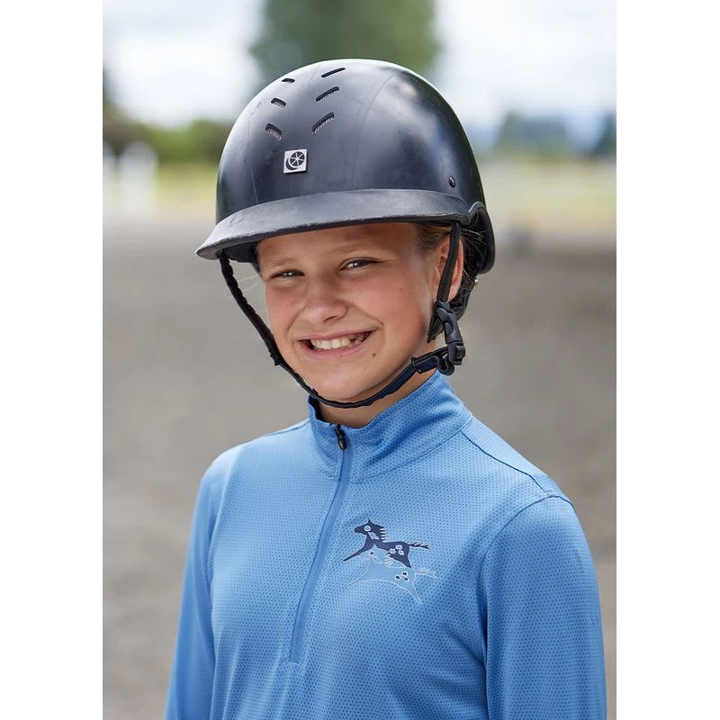 Quite fittingly, painted ponies gallop across the heart of this technical long sleeve top for horse loving kids who spend long summer days outside.