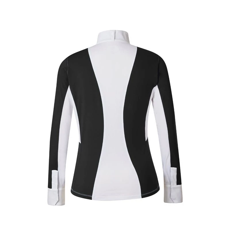 Ice Fil mesh down the center back and under the arms provides additional ventilation, while anti-microbial Silver Plus keeps riders feeling fresh with natural odor-reducing silver compounds. Princess seams and four-way stretch double knit fabric provide suitable coverage and creates a flattering silhouette that fits smoothly under a show coat.