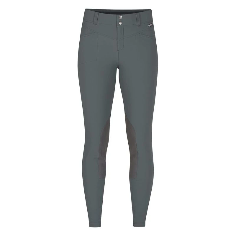 Durable, stretch-woven Dynamic Extreme fabric provides flattering coverage while shedding dirt and light rain to help keep things clean and professional. Two-snap zip fly and streamlined front pockets add sophistication for a breech elegant enough for the show ring and built to stay that way through daily use. GripSoft knee patches add supple grip.