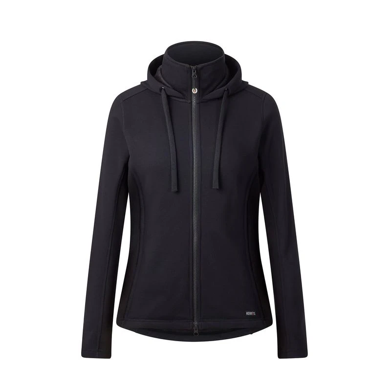Full zip styling with luscious, plush fleece inside and a soft, matte exterior that sheds hay and dirt. Stretch panels free you to reach for forelocks and carve a flattering, feminine silhouette. Pop the hood on this tech top for post-ride warmth, but even hood down, the extra tall collar keeps you cozy. Two front hand-warmer pockets, plus a bonus inner pocket to keep your phone handy.
