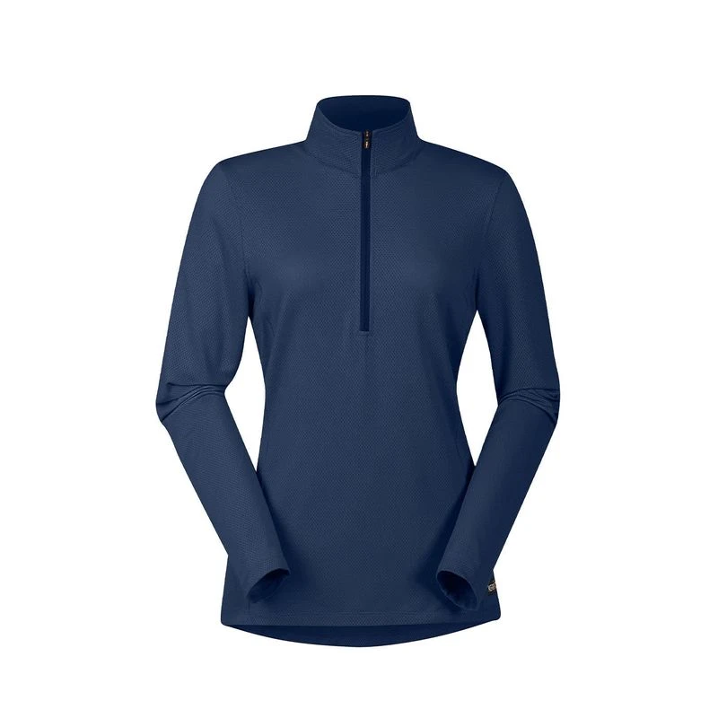 The whisper-light fabric provides UPF+30 sun protection and stretches with every move, while the Ice Fil in this long sleeve shirt keeps riders cool by lowering skins surface temp by up to five degrees. Ten-inch zip collar adds additional ventilation while the sporty, feminine fit, and equestrian hem flatter.