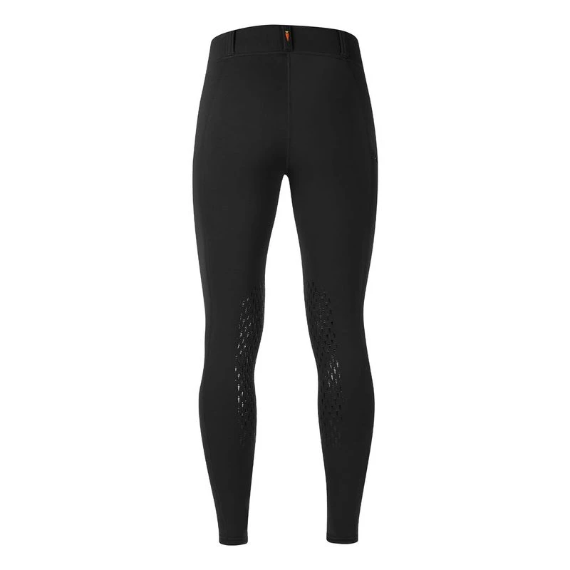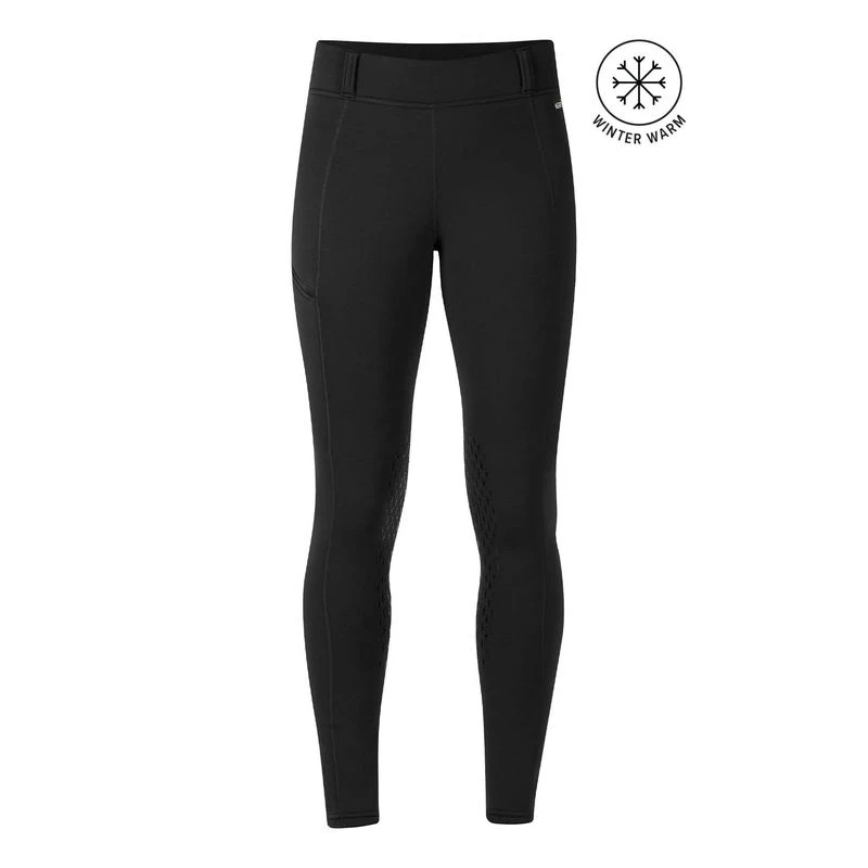 Ideal insulators for frosty winter rides and barn chores, the brushed fleece Polartec Power Stretch interior of these cold weather tights provides snuggly warmth while the matte exterior sheds hay, shavings, and horsehair. Kerrit Sticks Silicone knee patches add security without restriction for comfy performance. Sporty waistband in a Klassic rise with belt loops softly conforms while the zip pocket holds easy access treats.