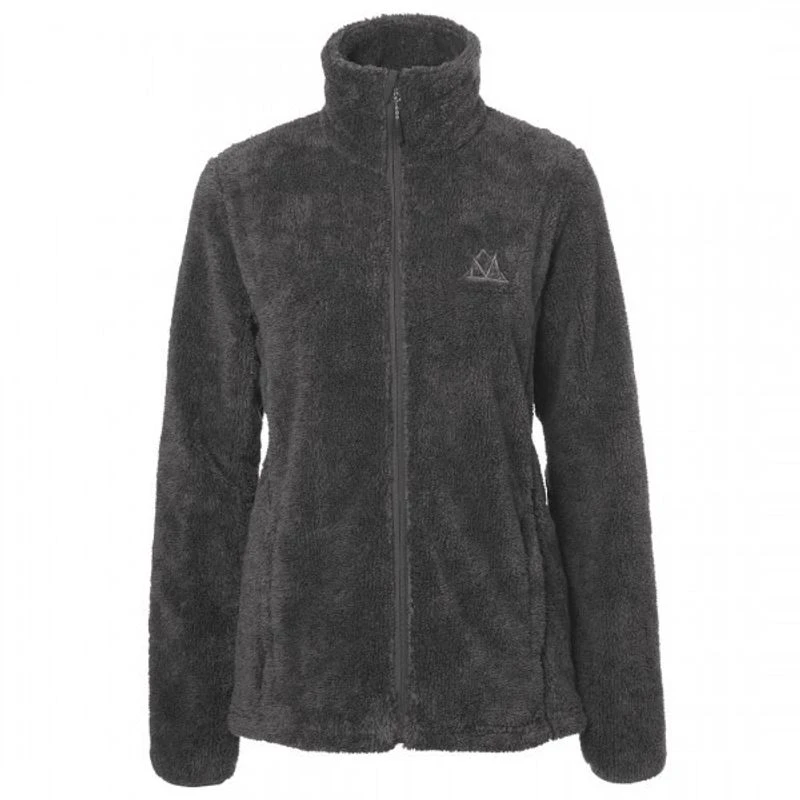 High pile fuzzy fleece with cozy high collar for additional coverage and warmth and 3D Mountain Horse logo embroidery.