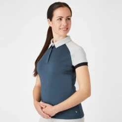 Horze Women’s Laura Ventilated Polo Training Shirt – Obscure Night Blue/ Pebble Grey