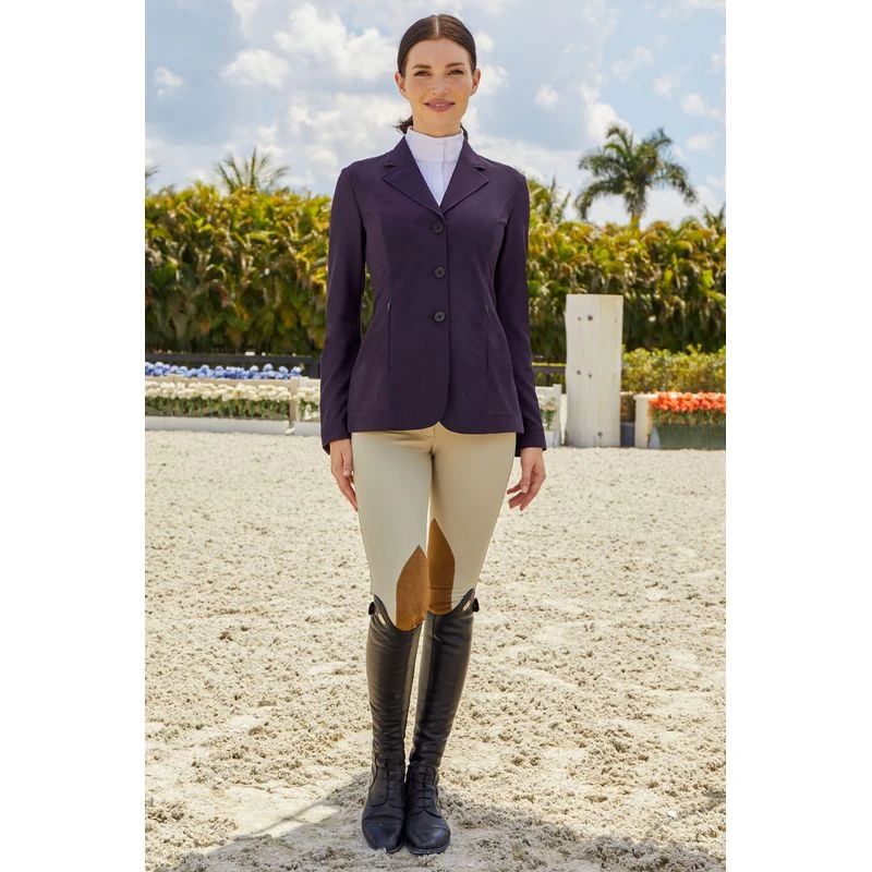 This show coat is a game-changer! The lightweight mesh makes it so comfortable to wear, even on hot days. The plum color is stunning and sets it apart from more traditional shades. The fit is flattering, and it’s easy to pair with other show attire. My only minor complaint is that the sleeves could be slightly longer. Still, I’m very happy with this purchase!