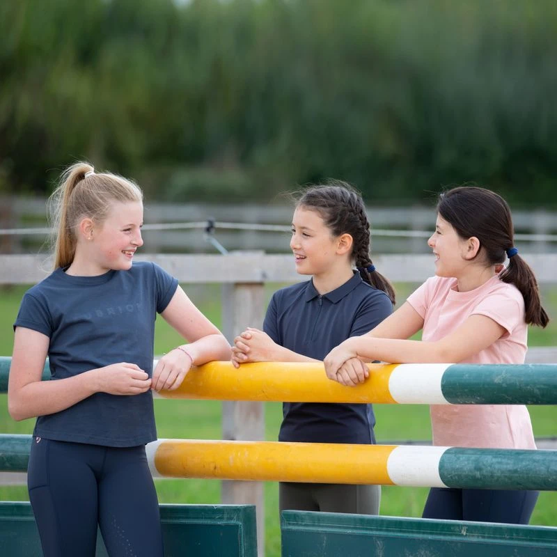The Repose t-shirt looks equally good paired with jeans or breeches. Styled for a casual look with a dipped hem and turn-up short sleeves, a satin inner neck binding and self-color printed logo add interest.