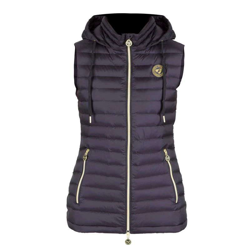 This classic puffer vest has a full front two way zip and side zipper pockets. The hood with drawcord if perfect for sudden weather, and is large enough to fit over a helmet if need be.