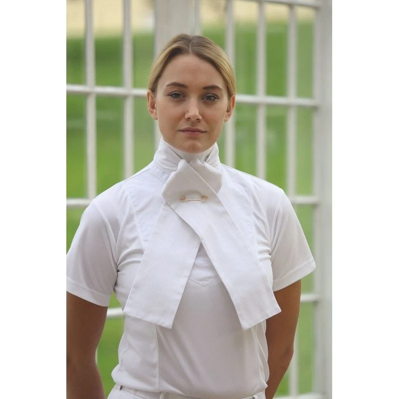 This stock tie is untied, and made of cotton pique. It is unisex, and will fit men and women.