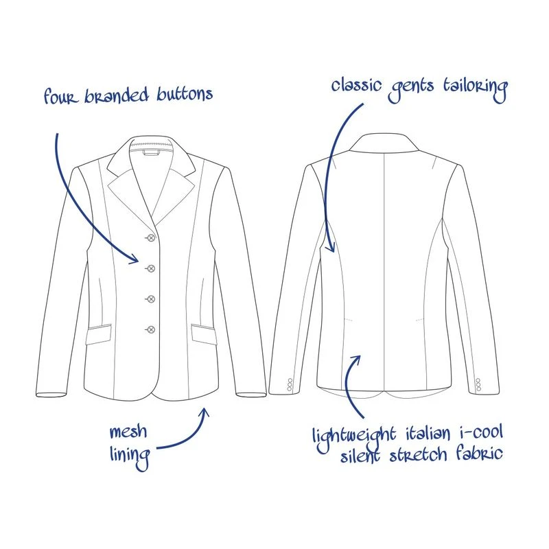The combination of classic tailoring and the latest in fabric technology result in a show coat which fits neatly while providing the rider complete freedom of movement. The styling is kept simple and clean with four buttons and double vent – making it appropriate for lower level dressage as well as jumping.