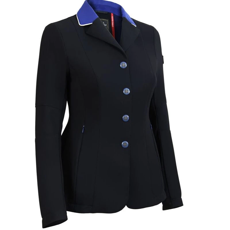 Tailored using Tredstep’s exclusive high performance light weight i-cool fabric with silent motion and 360 degree stretch. The Solo Vision is the epitome of high performance in a show coat, incorporating mesh under sleeves, articulated arms, a hidden front zip with contrast color snap buttons and matching contrast collars and cuff details.