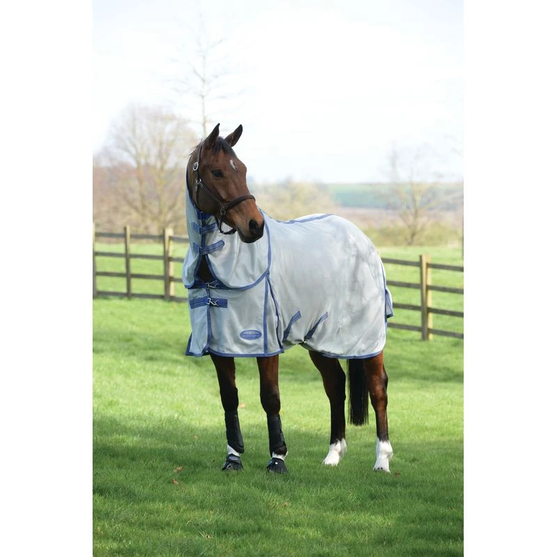 Soft durable polyester mesh with NEW Ultra Cozi belly wrap and full wrap tail flap for premium protection. Ezi-Clip front closure, traditional side gusset for natural movement, 210T nylon lined shoulders, mane and tail flap and elasticated, adjustable and removable leg straps.